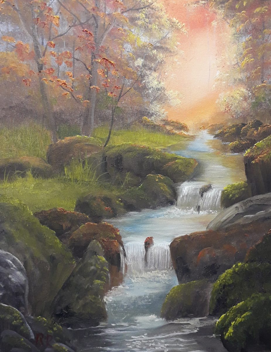 In this course we will use oil paint to create Autumn Waterfall. At the end of the day you will have created a beautiful painting which you can take home with you when you leave. All you would need to bring with you is your lunch some paper towels and an apron. I will provide all of the art materials that you will need to paint this painting.